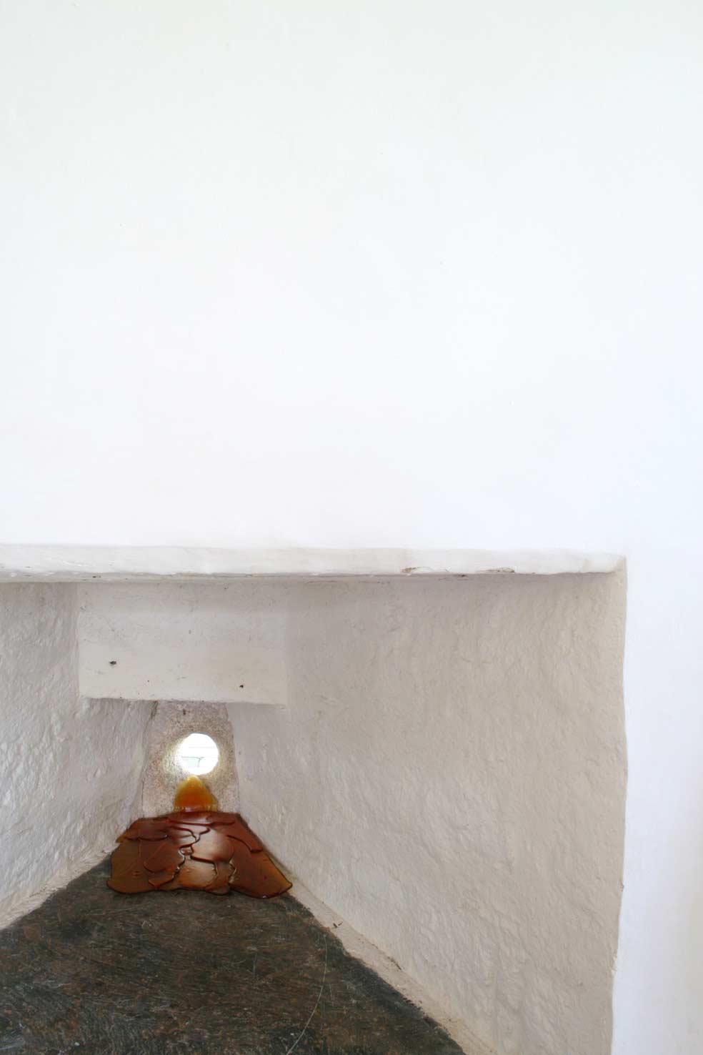 Hidden Art Curated was an exhibtion of work by selcted makers in response to the history and environment of Godolphin House, built c.1475. These pieces, inspired by the story of the house, sought to highlight overlooked and disused apertures. Glass appears as if the lifeblood of the house is dripping or flooding from scars of bygone features.